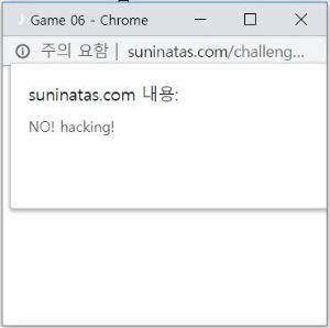 이 문제는 'SQL Injection'로 풀어야 하는데, 가장 많이 사용이 되는 "1 'or' 1 '=' 1" 을 대입해 봤다. 대입해본 결과 "NO! hacking!" 이라는 구문이 팝업창으로 나타났다. 쿼리문이 전달되지 않았던 것 같습니다.