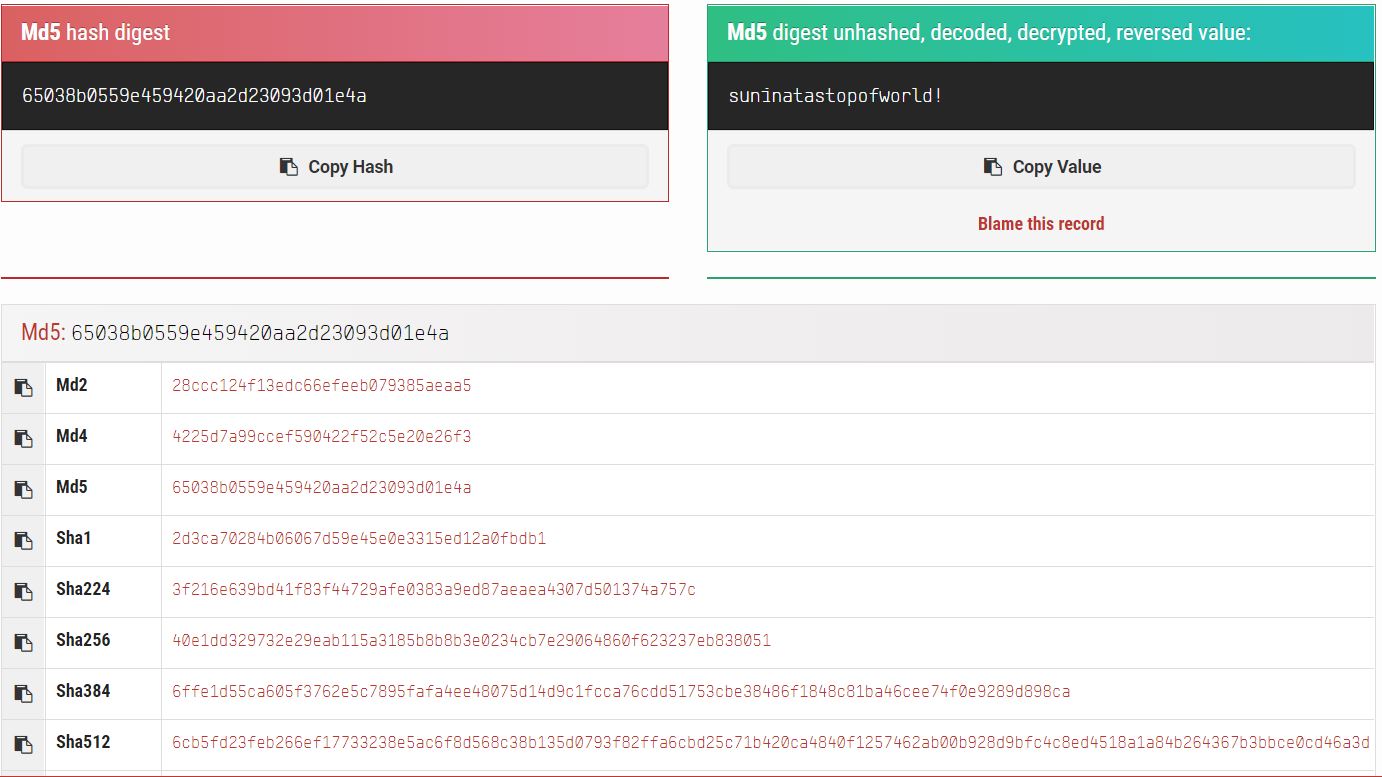 그래서 이번에는 두번째 게시글에서 'reference!'에 있는 MD5Hashing을 이용했습니다. 'suninatastopofworld!' 문자를 MD5 변환을 이용해서 쿠키 값에 넣었는 데, 아무련 변화가 없었습니다....