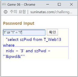 세번째 게시물은 다른 웹 페이지로 넘어가는 것이 아니라 password를 입력하라는 창이 떴다. 밑에 문장은 SQL구문으로 해석하면 이렇다.