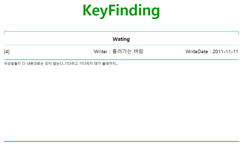 세번째 게시글의 진짜 모습은 아래의 사진과 같습니다. 'README' 게시글을 보니 키를 찾으라고 합니다. 그래서 'F12' 버튼을 눌러서 소스코드를 확인했습니다.