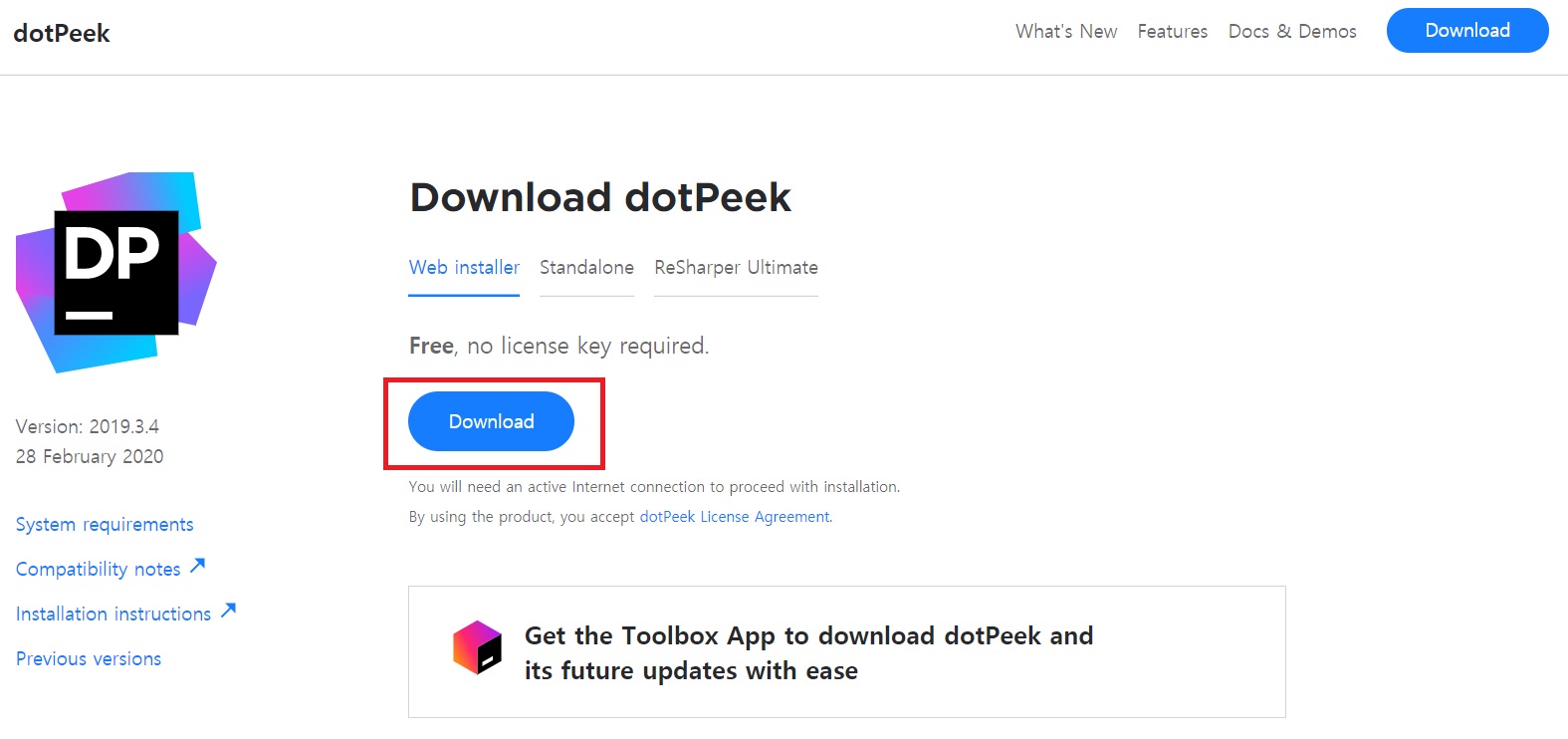 1. 첫번째로 'dotPeek' 홈페이지에 접속합니다.