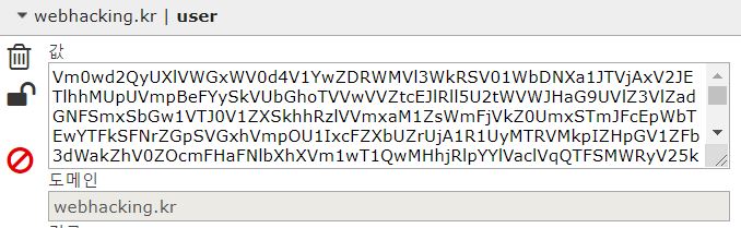 소스코드가 한눈에 들어오지 않고 엄청 길다. 간단하게 해석해보자면 오른쪽 화면에 보이는 소스코드에서 decode_id의 값이 admin이고 decode_pw의 값이 nimda일때 문제가 해결되는 문제인 것 같다. 그러면 나는 Cookie에서 id와 pw 값에 정확한 값을 입력하면 문제를 풀 수 있을 것 같았다.