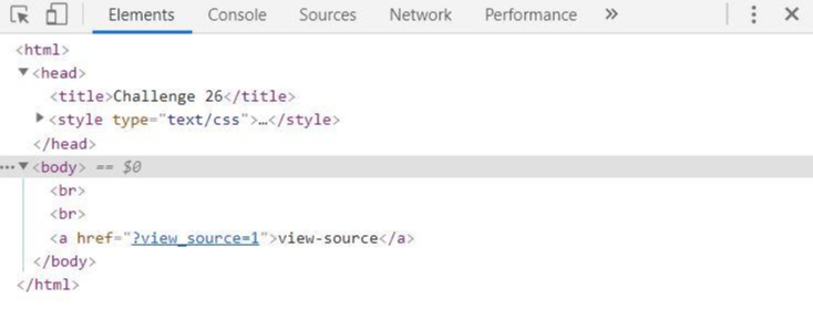 26번 문제에 들어가보면 검은색 바탕화면에 달랑 'View-source'만 존재한다.