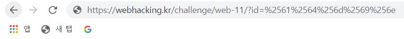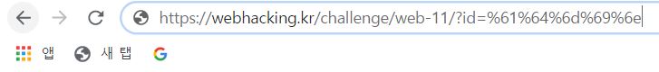 그래서 id값에 ''%61%64%6d%69%6e"을 넣었다.