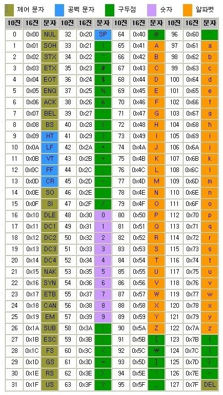아래의 사진들은 각각 'ASCII 인코딩 표'와 'URL 인코딩 표'이다.